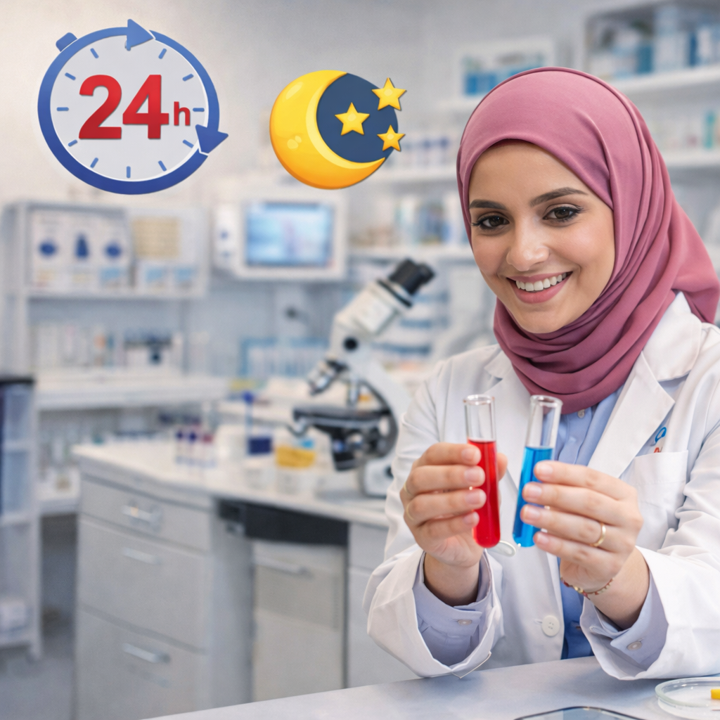 نعلن أن المعمل يعمل يوميًا طوال أيام الأسبوع من الساعة 9 صباحًا حتى 9 مساءً لتقديم أفضل خدمات التحاليل الطبية بدقة وسرعة. كما نعمل حاليًا على تطوير الخدمة ليكون المعمل متاحًا على مدار 24 ساعة قريبًا لتلبية جميع احتياجات المرضى في أي وقت.
